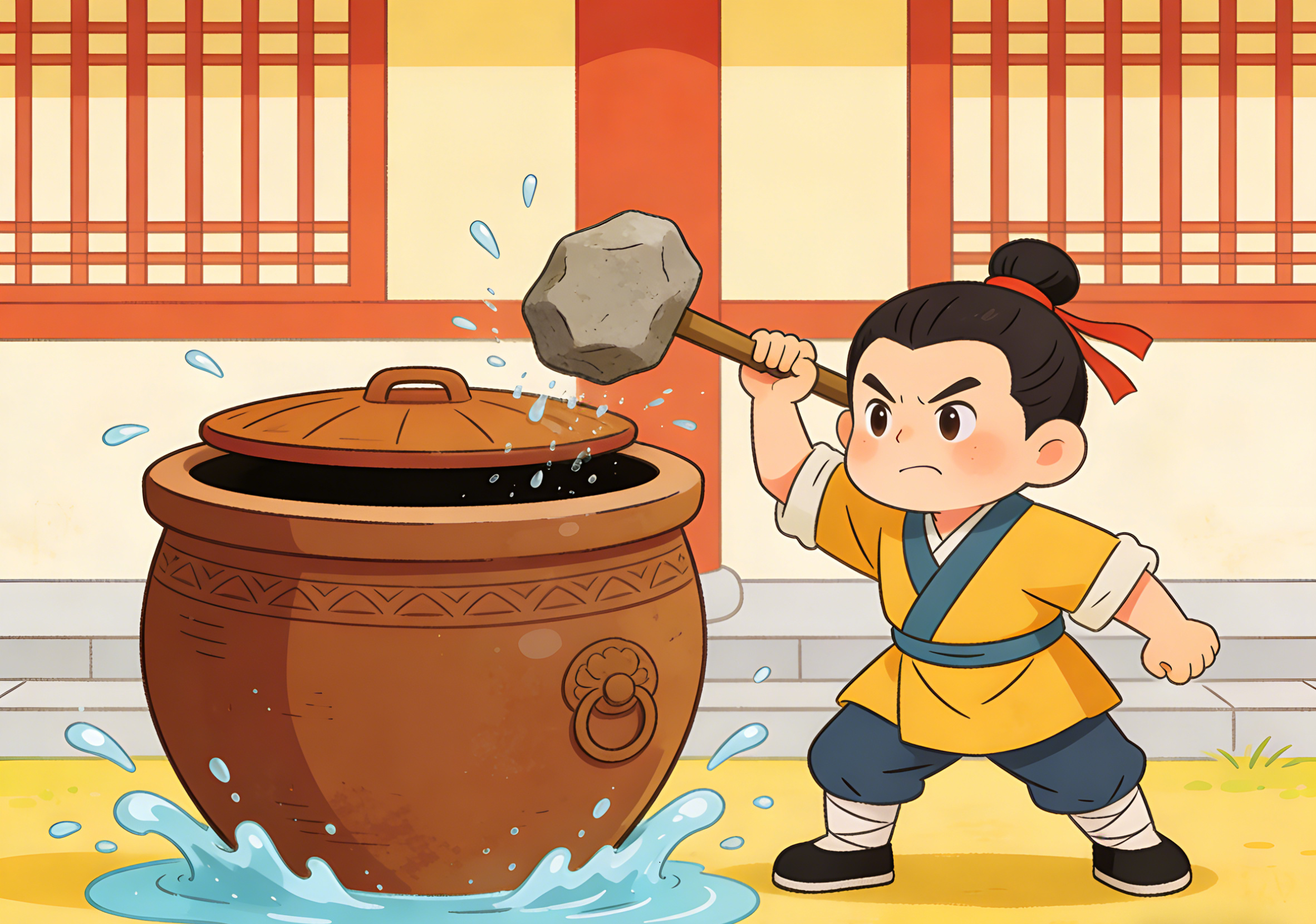 大人们闻声赶来时,看到的是一个破水缸、一院子的水,还有两个浑身湿透的孩子——一个吓得直哭,一个却站得笔直,正是司马光。